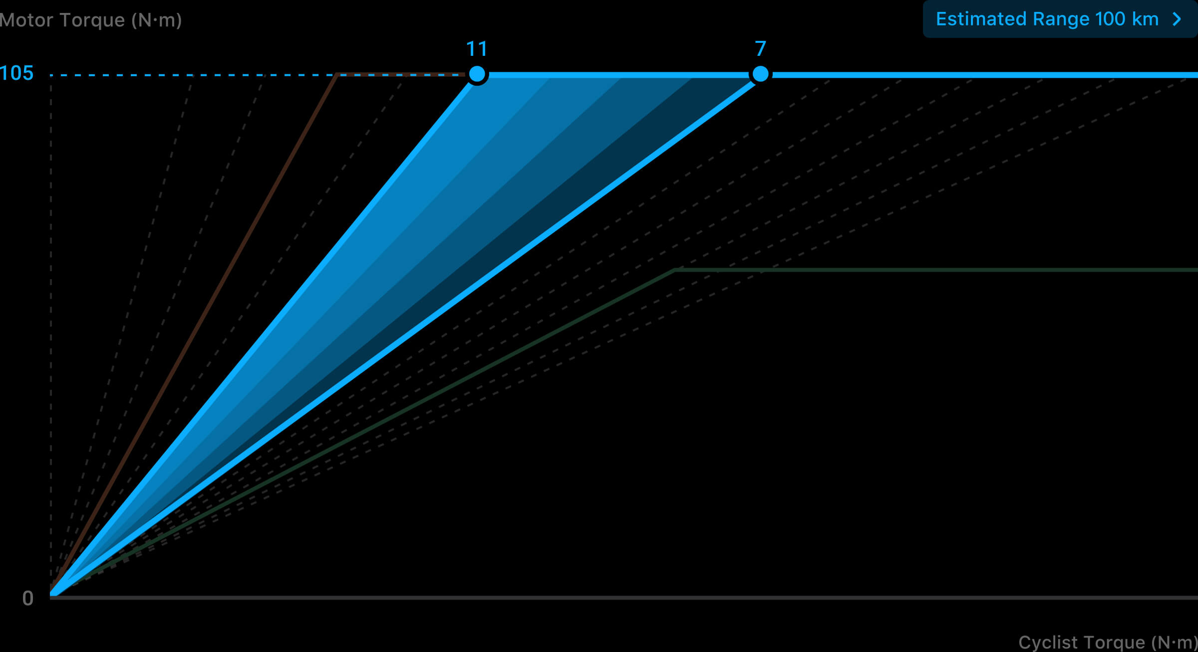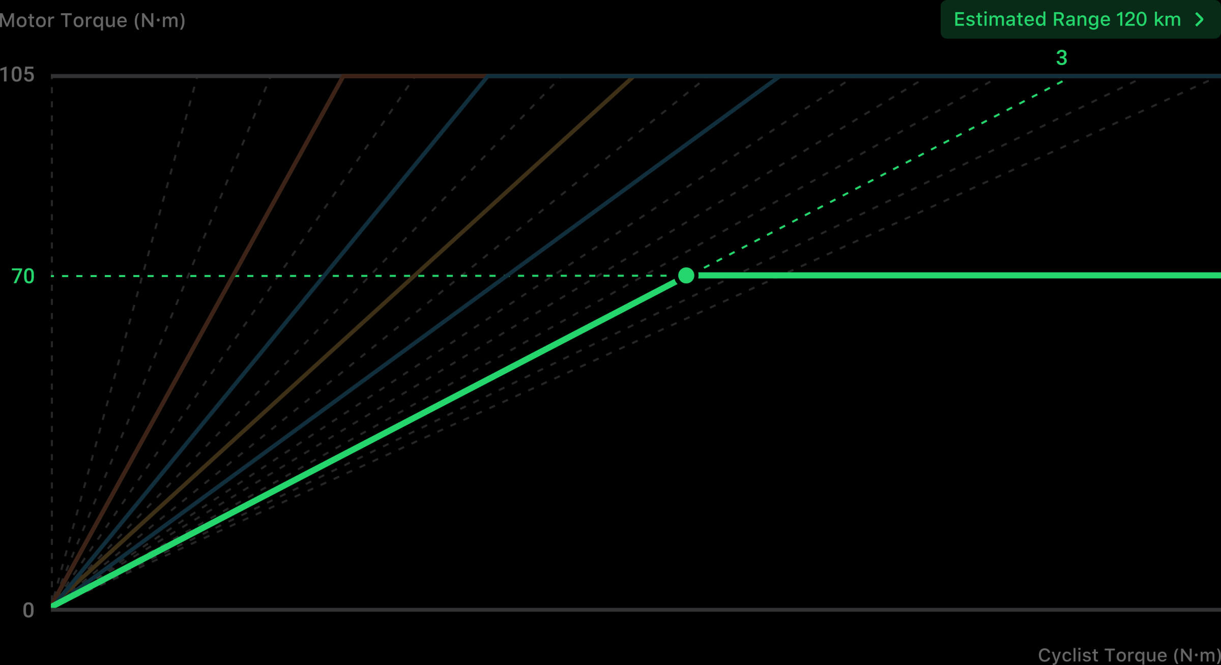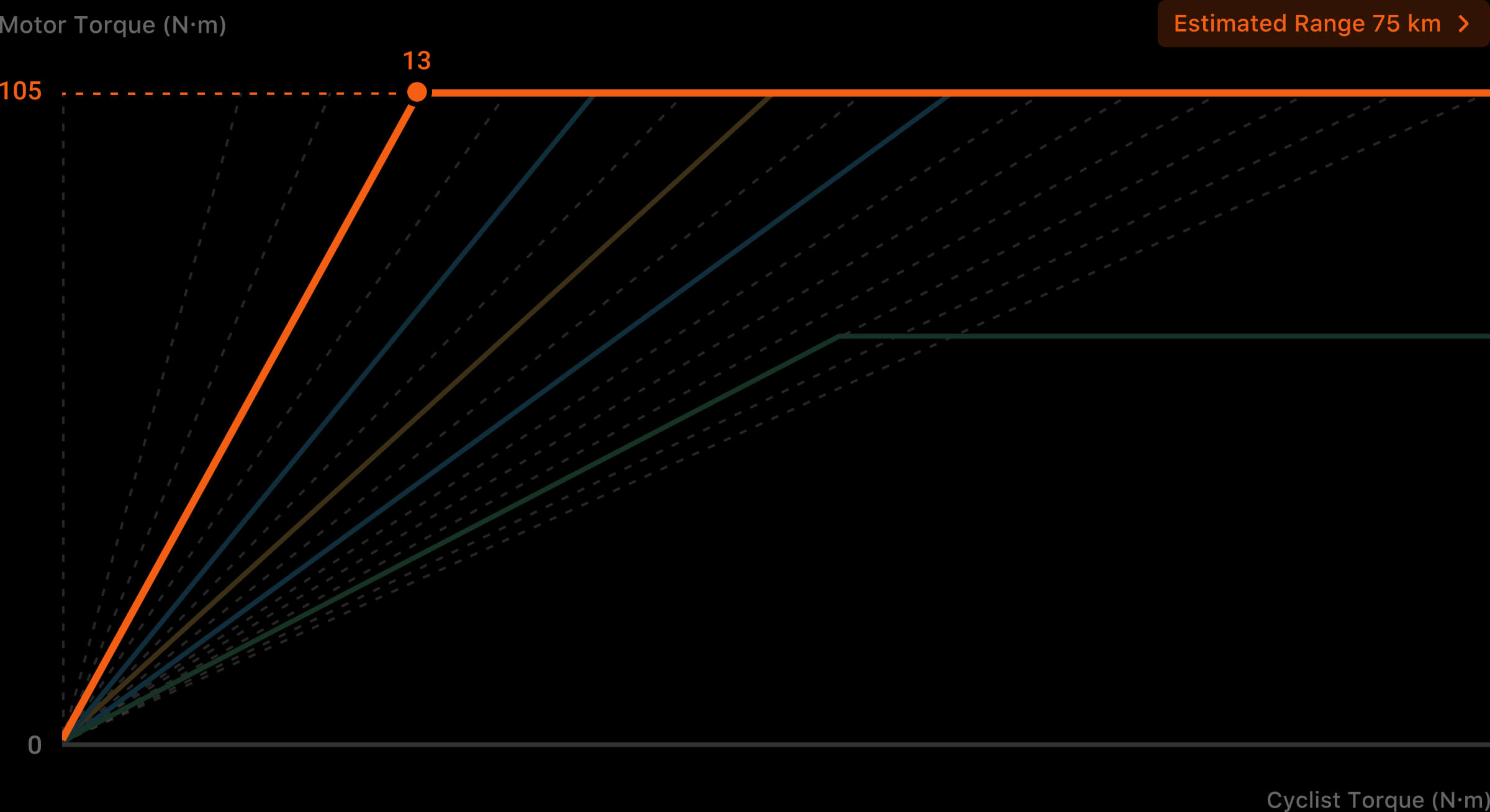 Navržen tak, aby pomáhal při strmých stoupáních. Agresivní zrychlení v kombinaci s maximální asistencí umožňuje jezdcům zdolávat náročné výjezdy.